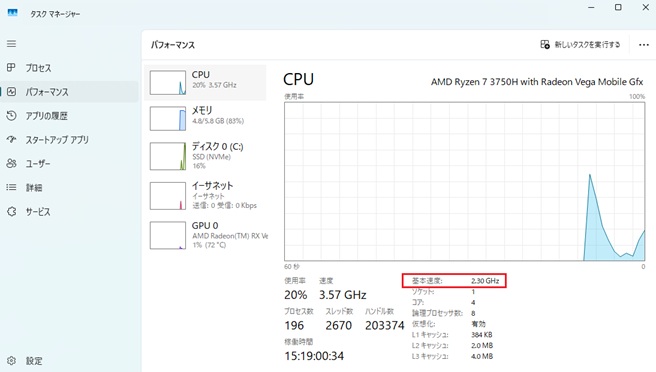コンピュータ A CPUクロック周期:1ナノ秒 CPI:4.0