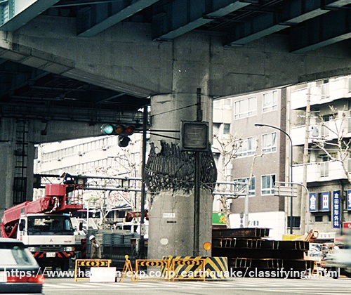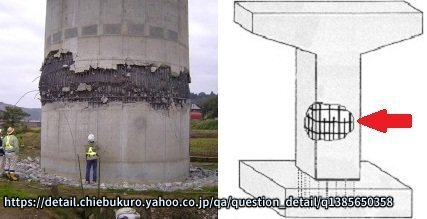 現在、旧来の設計法で建設された古いRC柱の段落とし部分や継ぎ手部分に鉄板を巻きつけたり高強度繊維を巻き付けて樹脂やコンクリートで固めるなど、爆裂破壊や折損を防止する補強工事が急ピッチで進められています。