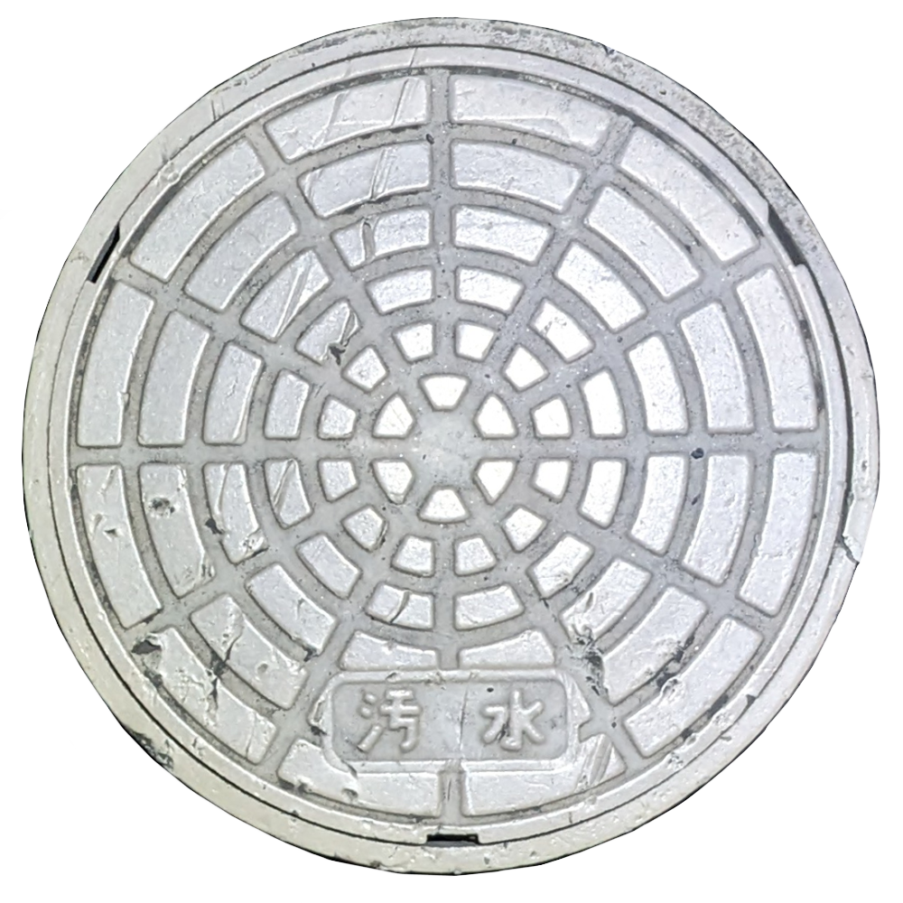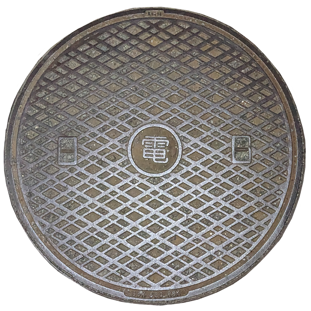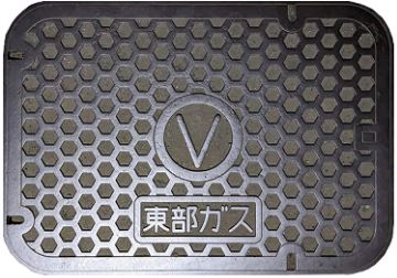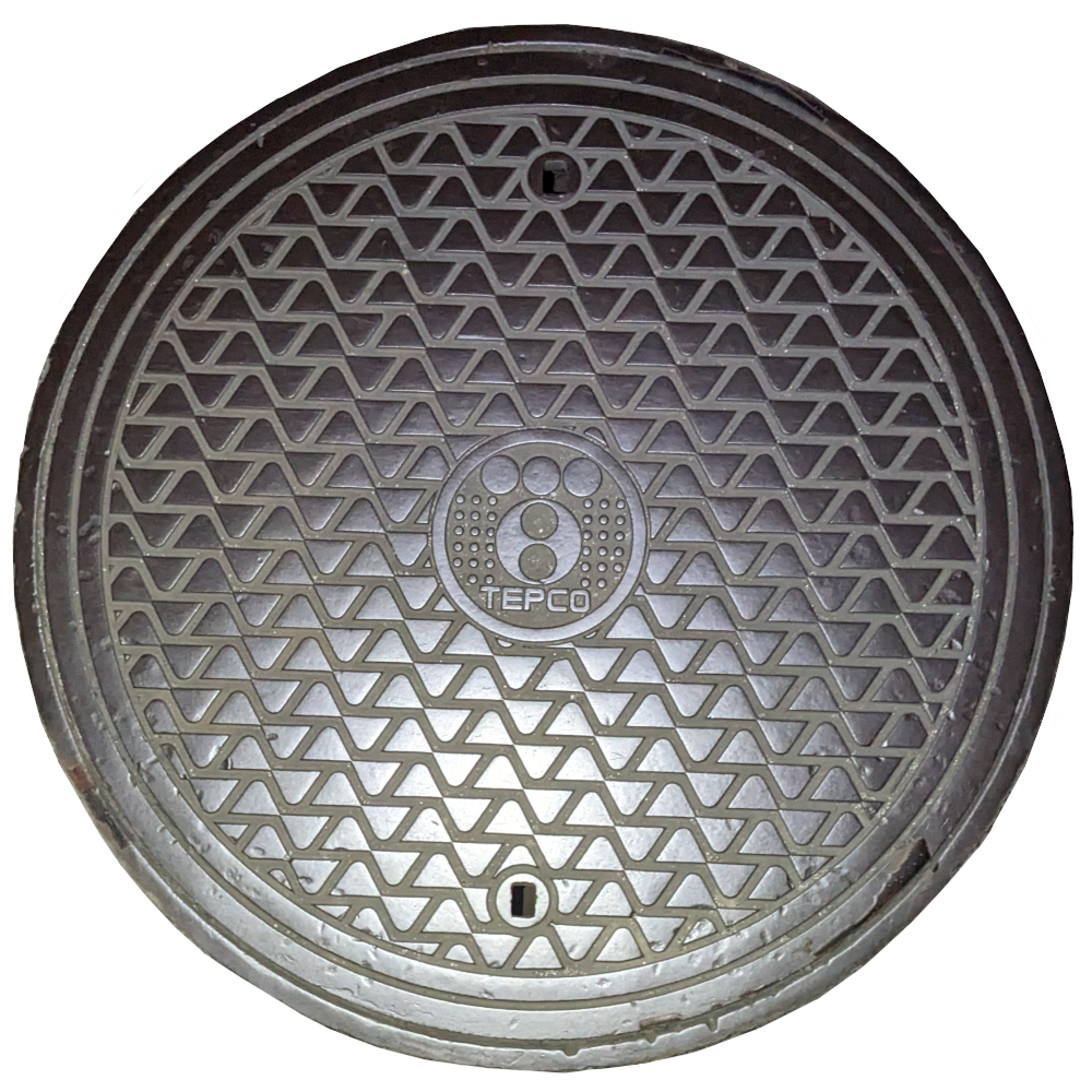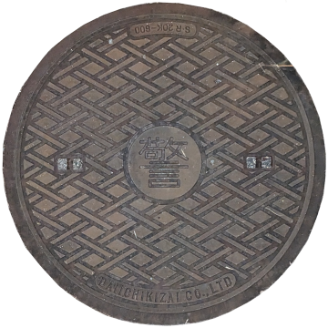 化粧蓋・・・鉄蓋に盆状の凹みを設けて、表面にタイルやコンクリートブロック、天然石材などを充填して、周囲の舗装材と同じ又は類似した仕上げが可能な仕様とした鉄蓋のこと