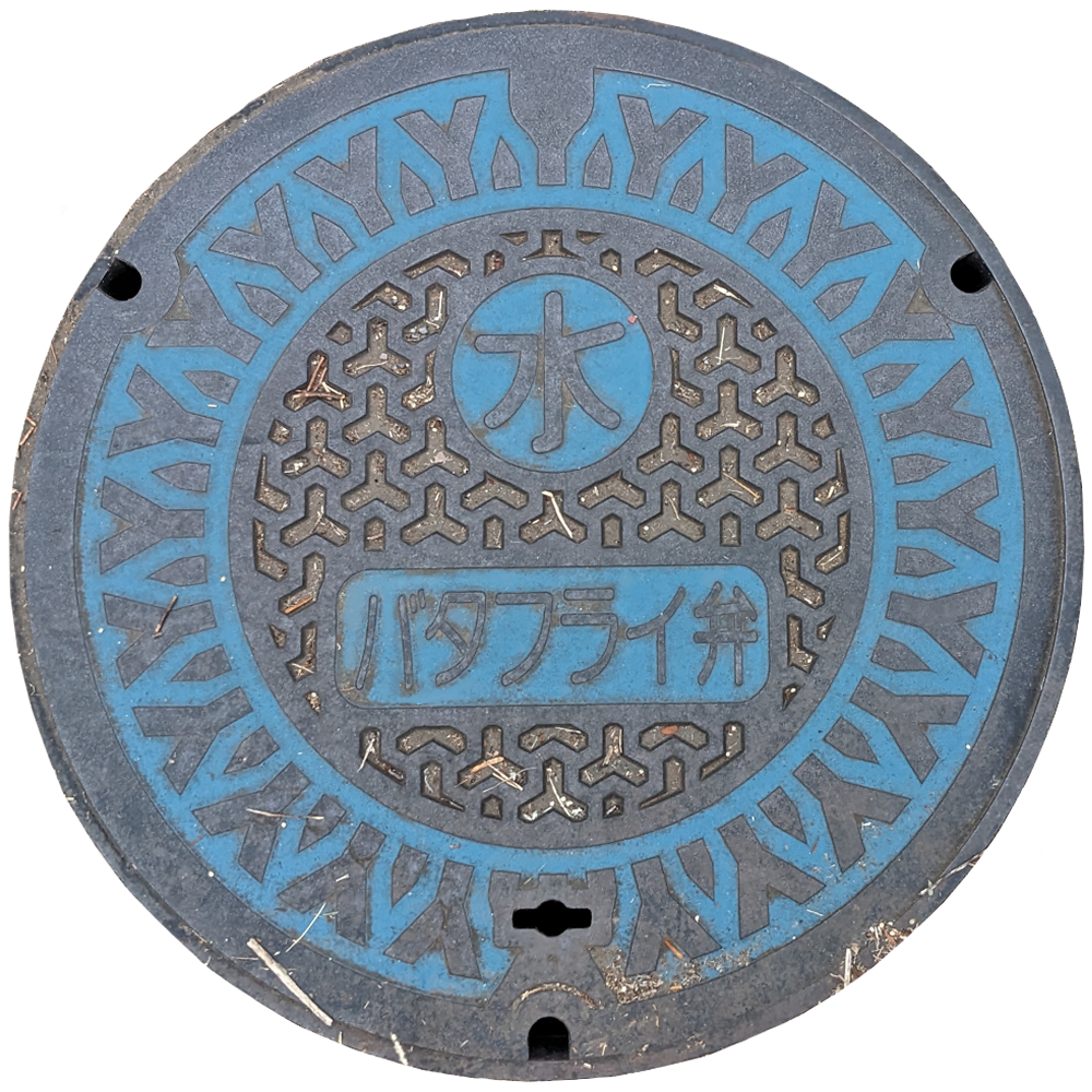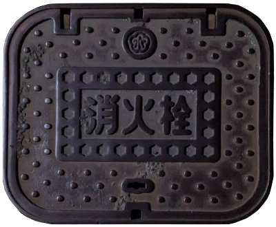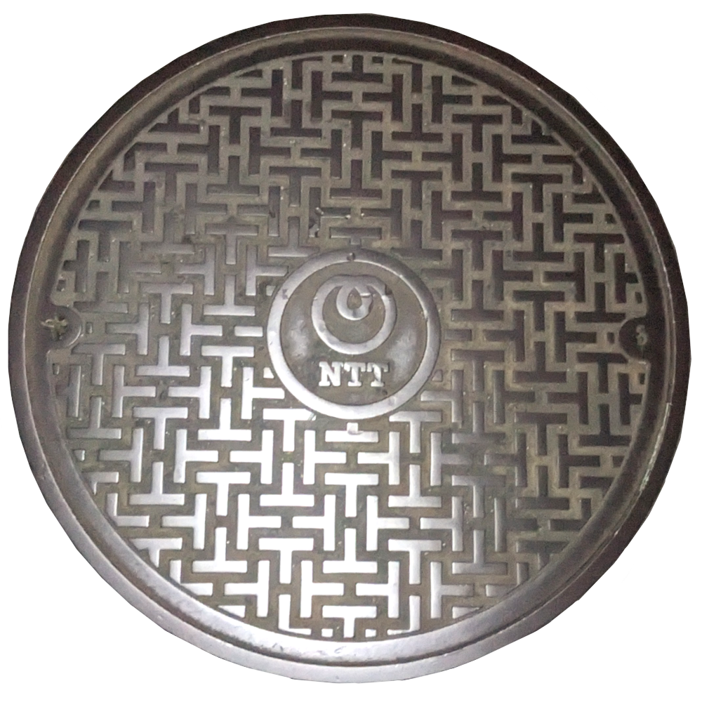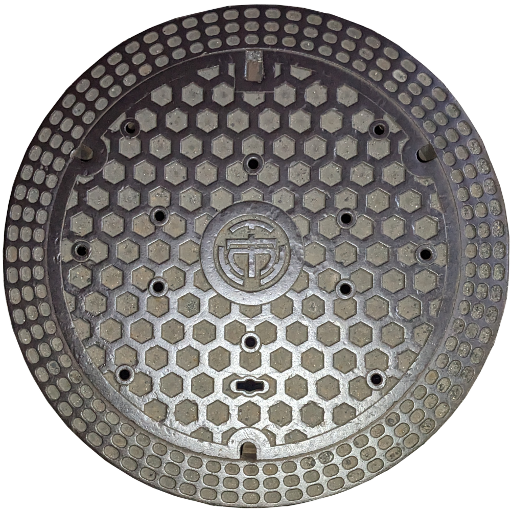 化粧蓋・・・鉄蓋に盆状の凹みを設けて、表面にタイルやコンクリートブロック、天然石材などを充填して、周囲の舗装材と同じ又は類似した仕上げが可能な仕様とした鉄蓋のこと