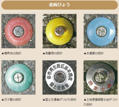 矢印によって筆界点を示すものや、十字や矢印を刻んだ金属プレート、金属鋲などのこと。