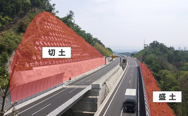 高い地盤や斜面の土砂を切り下げて平坦な地面を作ること。